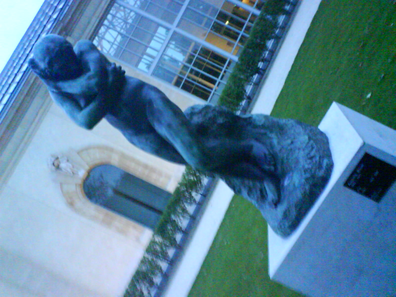 A walk along the Seinne to the Louvre, the next icon to tick off. Distances are slightly more that I’d thought, and every corner has some small statue or important landmark. Bored of taking photos of these very quickly, but often turn around to take in Paris’s impudent prick as evening comes … lit up like it was wearing some surrealistic condom of light. Through the centre of town coming up to the Louvre … it’s been a long walk, and the small pack of essentials is just about as heavy as the big bag of crap (and a lot less comfortable to wear … only really designed to hold a laptop). Another museum, not sure which, three sculptures negligently slung up in the garden take my eye. Three Rodins tortured figure holding arms and contorting bodies trying to avoid some horrific site. A break they’re beautiful works, and there doesn’t seem to be anything or anyone around to stop me from taking them in from right up close. Difficult to avoid the impulse to caresse … a spider has made a home in one of the upraised bent arms … night is falling, time to incresse the pace a little. Wandering the sculpture garden just in front of the Louvre, many great works of the 20th and late nineteenth century … a plethora of classical figures, and a few scattered Parisians feeding the ducks.