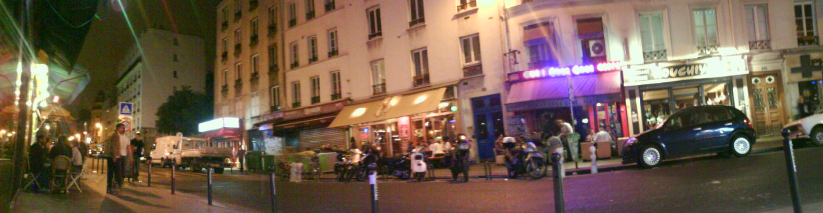 I declare my intention to return to the dance club, after many attempts to dissuade. I really want to lose the Egyptian guy but it’s difficult. He keeps hanging on trying to win the game. Am now pretty certain that he’s trying to outlast me and get everything I’ve got when I collapse. But years of all night partying have been good training for this moment. I turn down the next joint, but take a line of what I thought was coke … anything that might help. He says that he is returning to his place … invites me to stay but I know this is a bad idea, but it might be an easy way to ditch him … as long as I’m heading to rue oberkampff staying in wide, lit streets with passers by, and don’t fall asleep, things are ok. I stop randomly to rest my feet … they’re really starting to hurt, and once or twice to fight down waves of nausea. I vary the pace a lot. And try to avoid collsions and close bumps. It’s clear after about 20minutes that he’s going round in circles … he declares that he’s confused because of drugs … I know better … he’s looking behind, and I wonder what kind of connection is made with the guys back in the cafe. I’m looking in all directions at once as well. We’re not going anywhere. This is an endurance test, but he is pretty tired as well. I can’t find a way to ditch him without raising the stakes. I don’t want his friends to come back. I’m keeping the journey on wide well lit streets. We stop at a bus stop. He is very obviously as tired as I am. I don’t think he’s faking it now. Adrenalin and a history of long nights keeps me going. He tries to get me to sit down, but I say I need to stand … another wave of nausea … I do need to stand. He wants another run through my pockets, and comes up bumps into me. Very clumsy given we’re the only people on the street. I see his hand near one of my trouser pockets, and a tape sling half way out … a button up pocket to big a challenge for this guy, and the tape cling is tied and won’t slide easily. I think he’d spottded the bulge and thought it might be of value. But now the game is over. He knows this. I don’t want to raise the stakes, though I’m pumped and twice this guys size. He’s rough and from the streets of Paris, but unarmed. We’re both exhausted. – I’m going in that direction, and you’re going to stay here – It’s enough … I don’t think either of us want it to get worse than that right now.