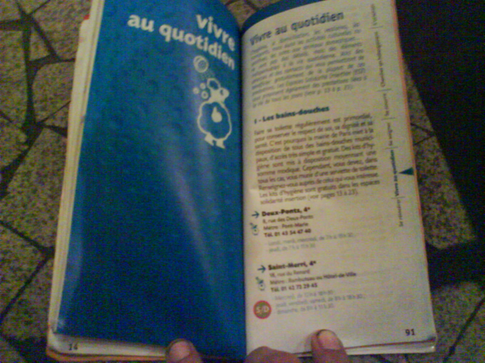Then a good nights sleep on the streets of Paris … warm blaket, shoes off and a friendly dog warming my feet … almost homy but I still sleep with my head on the sax case and an arm through the straps of my pack. One dude has a Paris survival manual for people living on the street … health, toilets, showers, police, survival tips … published by the left wing city of Paris.. There are free loos roundabouts, and even a shower is possible nearby for a few hours on sunday morning.