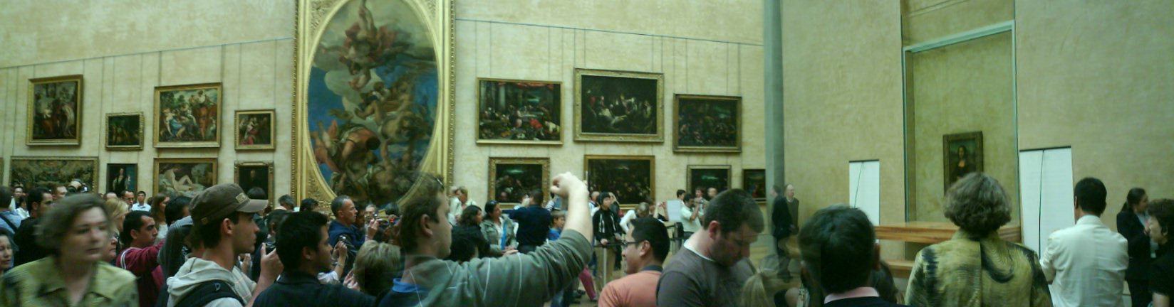 Across to another building to see the Italian and Spanish masters … and of course the most iconic painting of all. I’ve walked a long way, but there is a vibrancy here that I connect to much more strongly. A figure leaps out of the wall at me, and st John draws me to a group of leonardo’s, opposite a collection of botticelli. These really hold my attention. Can’t put it in words. Then the main event. Can’t really get closer than 5 metres to the Mona Lisa. It’s clearly a wonderful work but here is not the place to appreciate it. I’m more interested in the crowds, 30 or more groups and couples getting photos done in front of the uber icon. It’s really more of a reflection on how we value art … that we value the label of greatness more than an emanation of greatness. I think Leonardo’s st John had a greater spiritual intensity, and more wonderful light. For the most part, I favor the theory that the mona lisa is a self portrait in drag … Da vinci had a twisted sense of humor, was as gay as a party hat, and carried this picture around for most of his life. I don’t think this theory will work on the crowds though. Finish the art lunch off with a fine desert of Goya … wonderfully twisted drawings, and intense paintings. Could have spent the whole day in here … and it’s quiet enough to actually enjoy the images. Exit the Louvre via the African collection … some very intense pieces, but I’m too braindead to enjoy them.